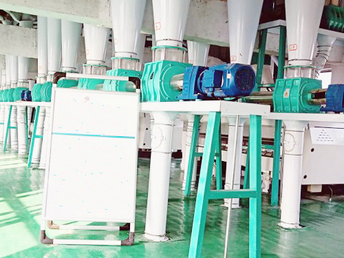在倉(cāng)儲(chǔ)、干法清理,制粉及面粉配粉的各道工序完全自動(dòng)化,日加工小麥200噸的面粉加工生產(chǎn)線(xiàn)。